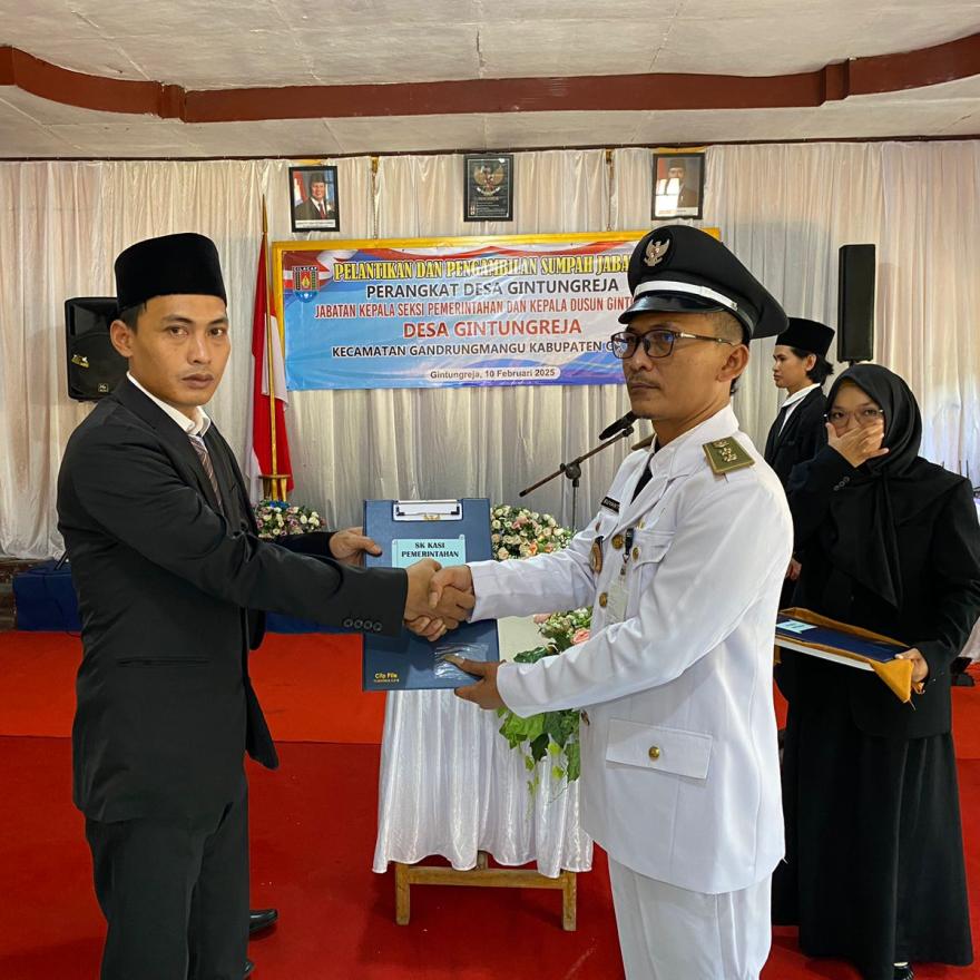 Dengan adanya pelantikan ini, diharapkan struktur pemerintahan Desa Gintungreja semakin solid dalam menjalankan roda pemerintahan desa serta meningkatkan pelayanan bagi masyarakat.